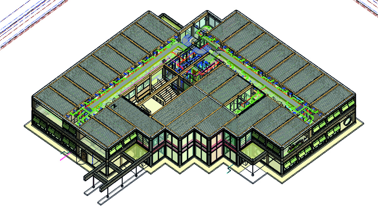 Heijink, bouwkundige bij ABT en de project- en ontwerpleider van Wisperweide. Het houten casco bestaat uit gestandaardiseerde losmaakbare kolommen en liggers, in combinatie met kruisgelamineerde houten vloerpanelen en verplaatsbare scheidingswanden. Ze vormen het bouwkundige skelet met een extra brede gang als ruggengraat. “De innovatie zit met name in de flexibiliteit”, zegt Ewoud. “Binnen de generieke maatvoering is een specifieke invulling mogelijk: modulaire scheidingswanden zorgen voor de configuratie van klaslokalen en gangen. Kastwanden in een lokaal kunnen worden veranderd in opslag, ruimte voor kasten of kapstokken, tentoonstellingswanden of met groen beplante wanden.”