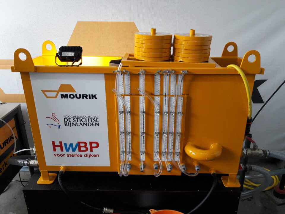 De mediumschaalproef was het hoogtepunt van de serie schaalproeven. Met een bak van 4 meter lang, 1,3 meter hoog en voorzien van een 3 meter hoge spindel om hoog water in de rivier na te bootsen, is het filterscherm getest of het daadwerkelijk een pipe kan tegenhouden. Er werd gewerkt met gekleurd zand en talrijke sensoren om het verloop van de proef te volgen. Met een flinke zandmeevoerende wel bij de uitstroomopening van de bak bleek het Prolock Filterscherm feilloos in staat om de pipegroei door de bak heen te stoppen. Inmiddels hebben meerdere partijen zich enthousiast getoond om ook proeven te kunnen doen in de proefopstelling. Een mooie ontwikkeling waarbij we op transparante wijze kennis met elkaar delen om samen innovaties van de grond te krijgen.