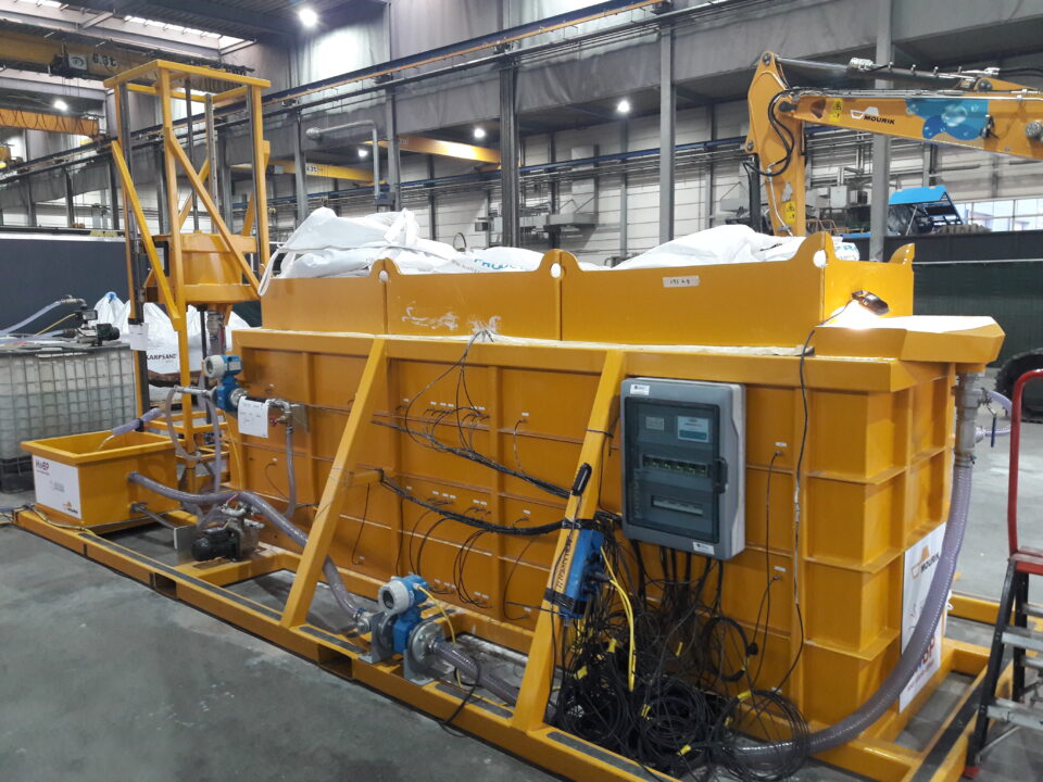 Na gunning van deelproject Salmsteke aan Mourik, is eerst bekeken of het concept haalbaar is vanuit de theorie. Hiertoe is een bureaustudie en modelberekeningen uitgevoerd. Het concept bleek kansrijk. Vervolgens zijn er schaalmodellen gemaakt en getest in de hal van Mourik Techniek. Met bakken met zand en water zijn experimenten gedaan om de resultaten van de modelberekeningen te valideren. Eerst op kleine schaal, de zogeheten ‘koffiebekerproef’, om in korte tijd veel proeven te kunnen doen. Hierbij hebben zijn de grenzen van het concept opgezocht door bewust het filterscherm ook te laten falen. Dit leverde waardevolle inzichten op over het toepassingsbereik. De opzet van de proefopstelling is in nauwe afstemming met Mourik Techniek uitgedacht, waarbij Mourik Techniek vervolgens de bak vervaardigd heeft.